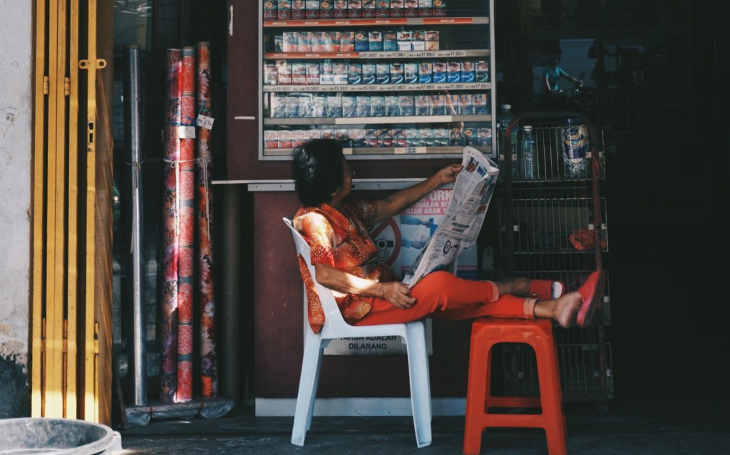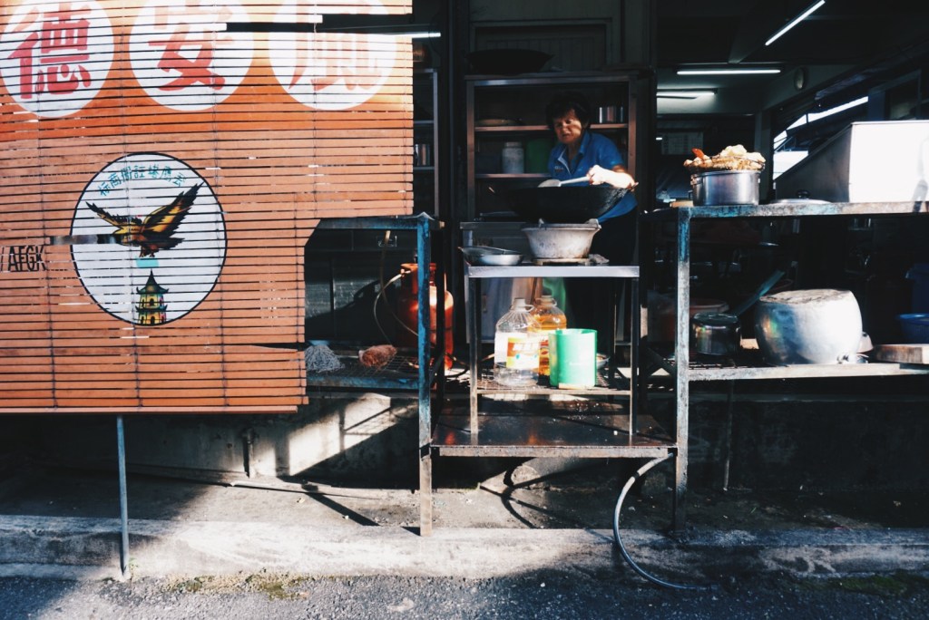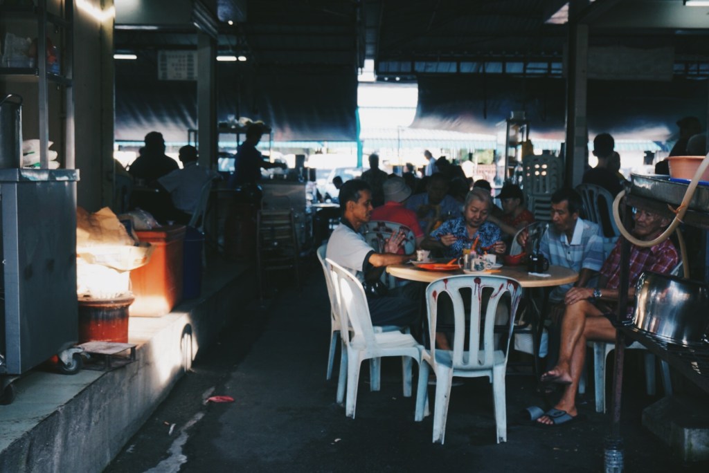 Walking around town took me about an hour past narrow village roads flanked by wooden houses with zinc patches. Patrons murmur at the long stretch of eateries just across the market, and I chose a spot next to an old lady reading the news and ordered myself some yong tau foo and kopi peng.