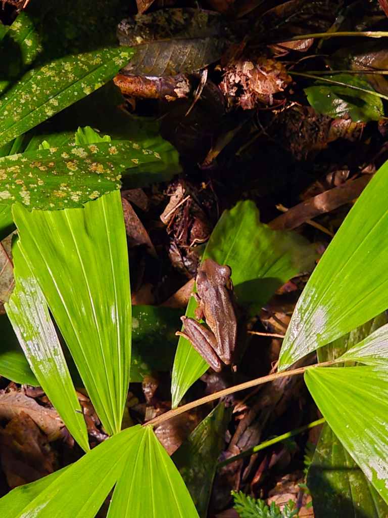 Walking, as much as birding, as much as watching trees like you’re in an art gallery, slows the world down to a scale that becomes delightfully tangible to the body. Alone, or with a friend that shares the same dispositions as you, and time no longer becomes a matter of concern. The scale of your existence warps. You find a magnitude of childlike joy in just watching a frog leap clumsily away from you after having felt your finger on its skin. You notice where the sun hits a tree branch at a certain hour of the day and there is exactly where moss or a gargantuan bird’s nest fern will grow.